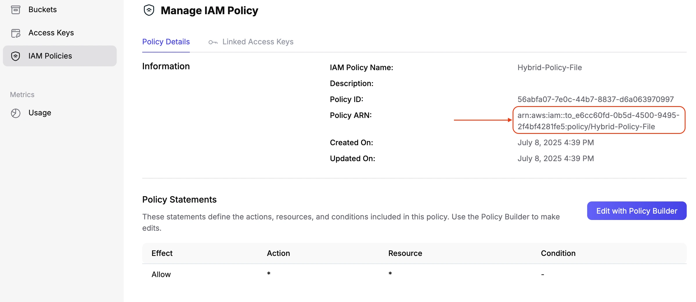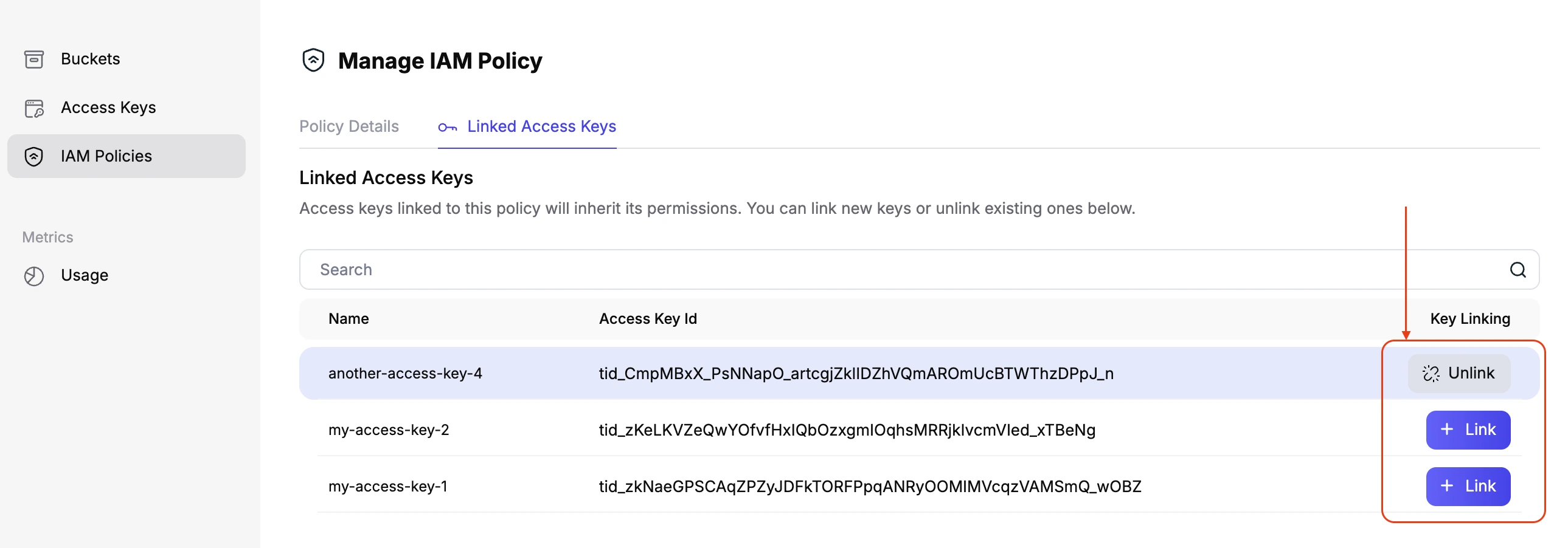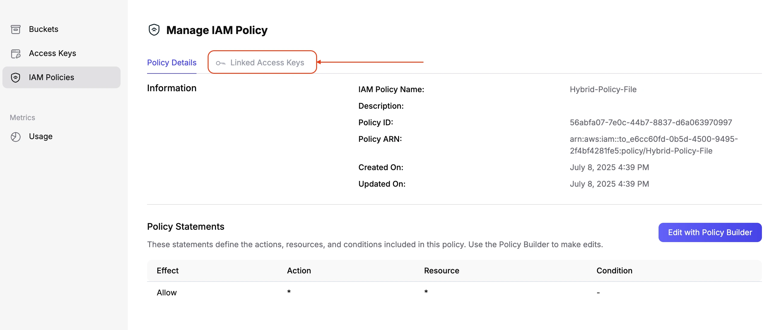 Linked Access Keysto view and manage which access keys are connected to this policy.